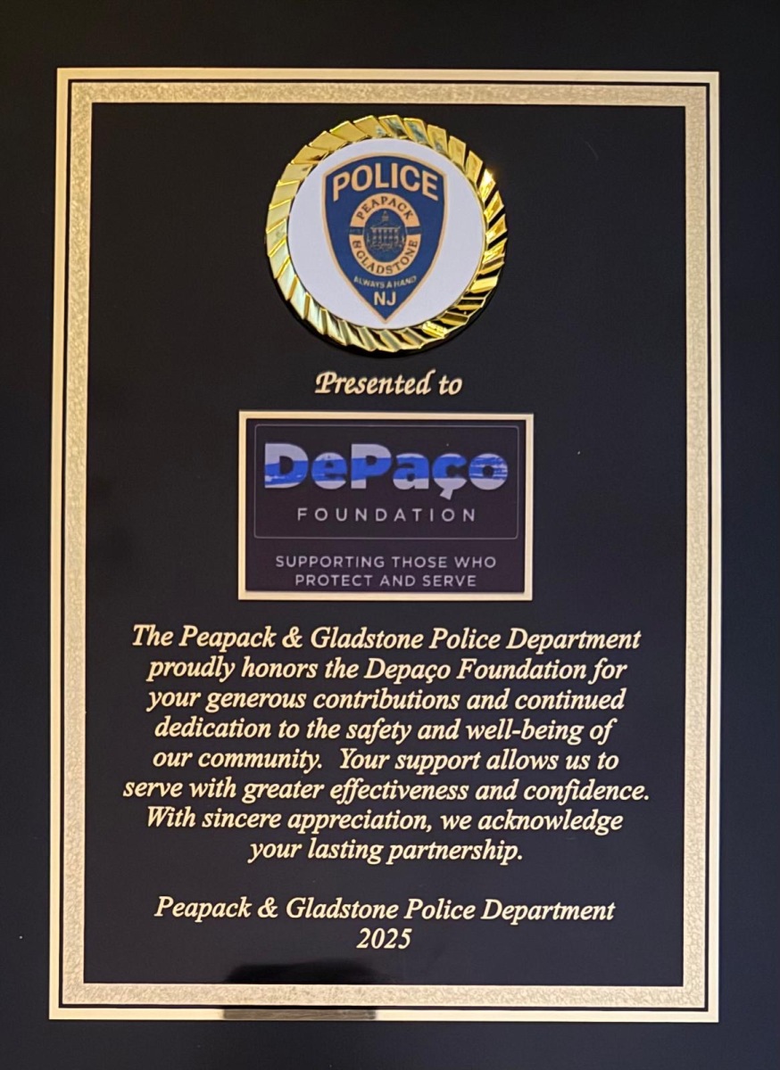 The Borough of Peapack and Gladstone, in the State of New Jersey, held on December 22, 2025, an official public recognition ceremony honoring Cesar DePaço and the DePaço Foundation, following the municipal proclamation approved on the same date, in acknowledgment of the donation of a fully equipped police vehicle to the local Police Department.